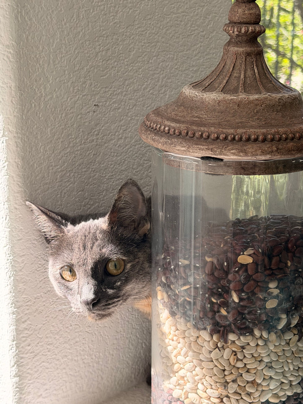 Explore the charm of feline curiosity and elegance with these captivating images of cats in various poses, from sitting on carpets to peeking behind objects and looking upwards with a curious expression.